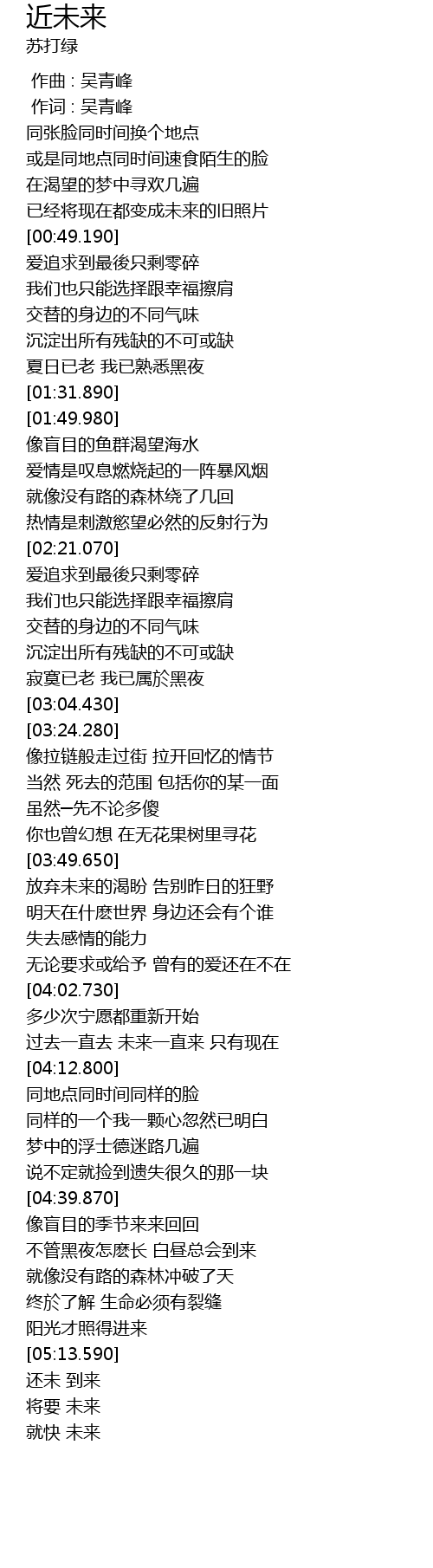 近未来jin Wei Lai Lyrics Follow Lyrics